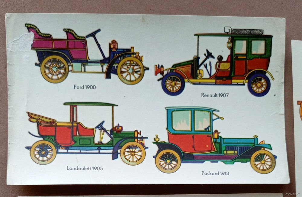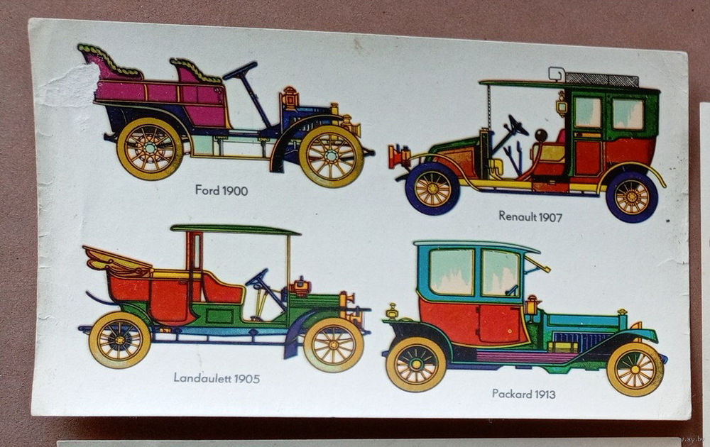 Переводная картинка ГДР (наклейка-карточка) ретро-автомобили. Made in DDR.