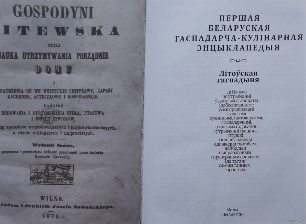Пераклад падрыхтаваны па выданні: GOSPODYNI LITEWSKA, czyli Nauka utrzymywania porządnie domu I zaopatrzenia go we wszystkie przyprawy, zapasy kuchenne, apteczkowe i gospodarskie, tudzież godowania I utrzymywania bydła, ptastwa i innych żywiołów, wedlug sposobów wypróbowańszych i najoświadczeńszych, a razem najtańszych I najprostszych. Wilno: Drukiem Józefa Zawadzkiego, 1858.
