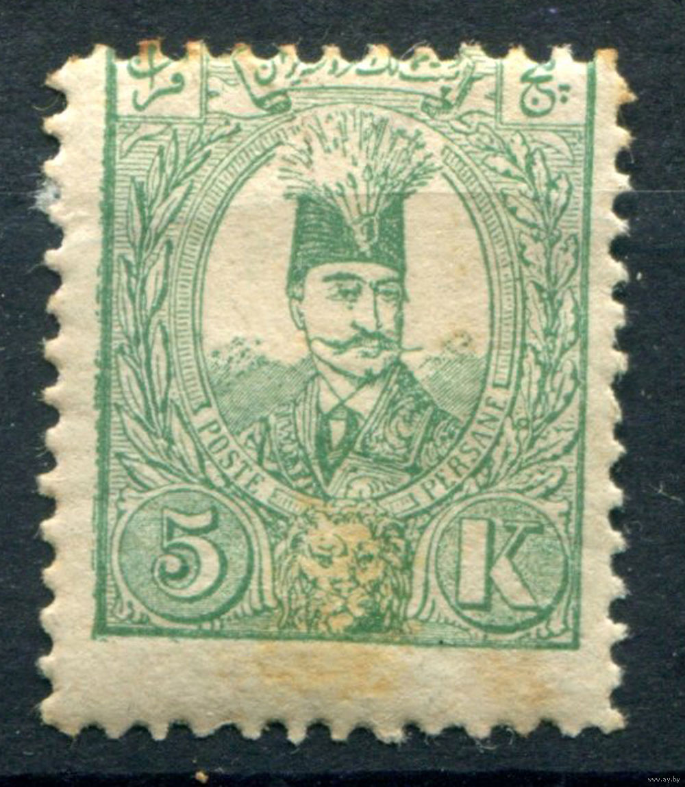 ![Персия (Иран) - 1889г. - шах Насер ад-Дин, перфорация 13 1/2, 5 К - 1 марка - MH с пятном на лицевой стороне [Mi 70]. #4-W1-121-A-1](https://s4-lot.aystatic.by/550x510/747/705/5040/5040705747_0.jpg)