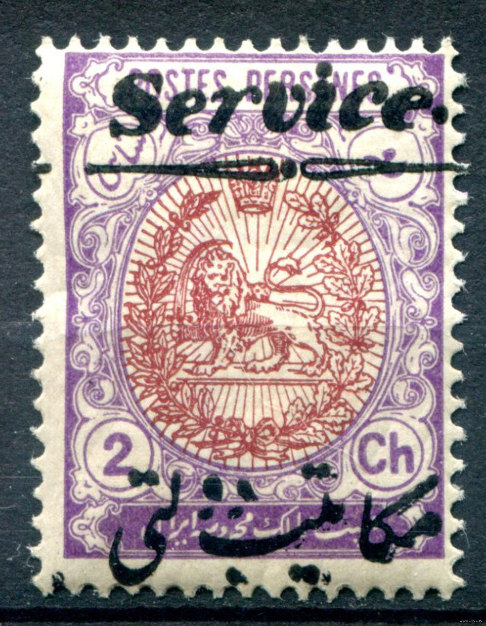 ![Персия (Иран) - 1911г. - лев, надпечатка Service, 2 Ch - 1 марка - MH, трещинки на клее [Mi 22]. #4-W1-123-A-1](https://s2-lot.aystatic.by/550x510/653/706/5040/5040706653_0.jpg)