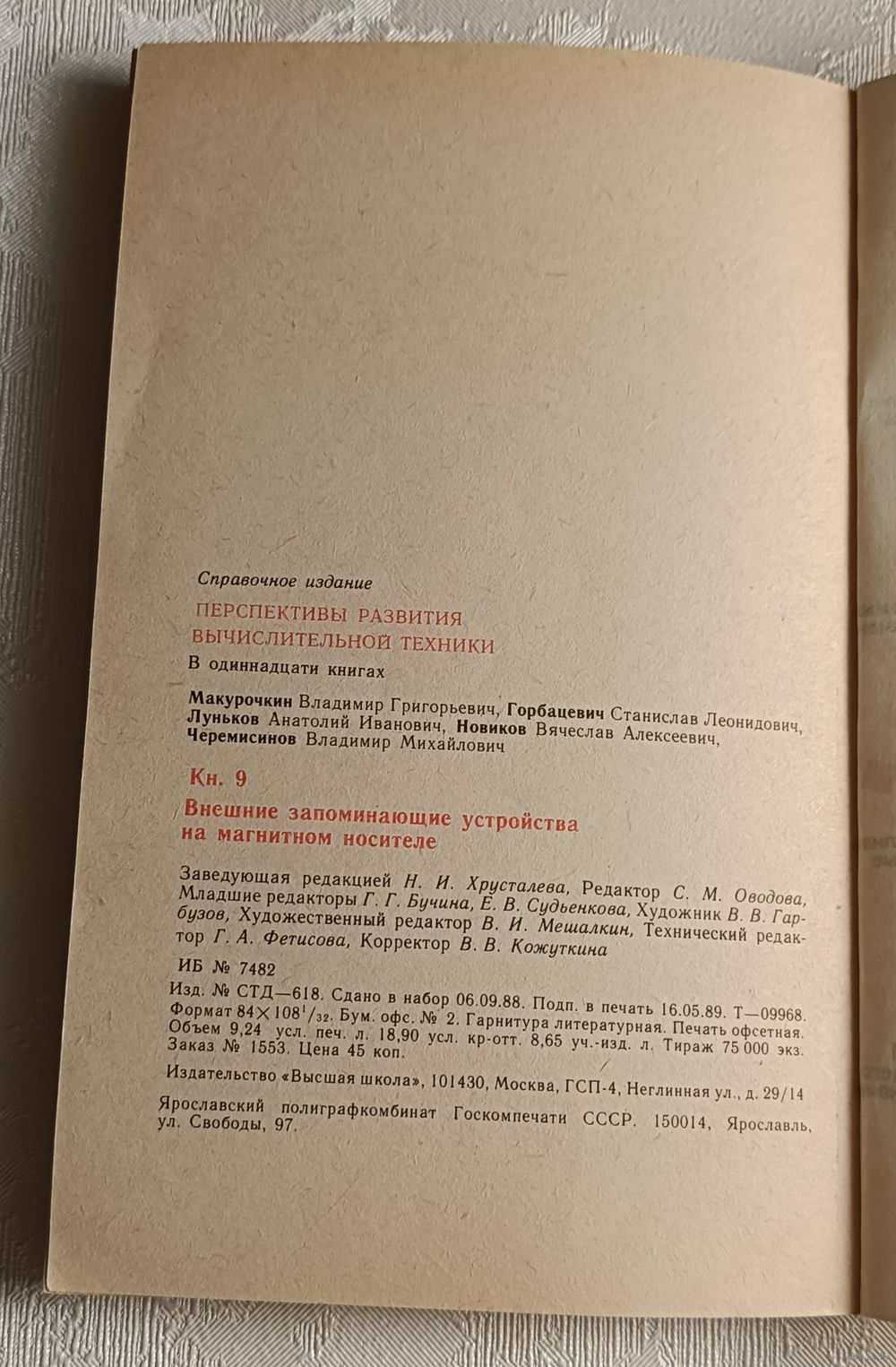 Перспективы развития вычислительной техники: В 11 кн.: Справ. пособие/Под ред. Ю. М. Смирнова. Кн. 9. Внешние запоминающие устройства на магнитном носителе/В. Г. Макурочкин, С. Л. Горбацевич, А. И. Луньков и др. — М.: Высш. шк., 1989. 175 с.: ил.
