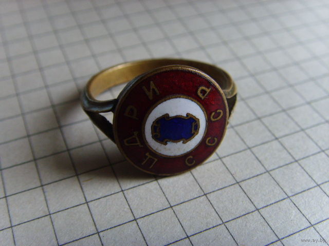 Абсолютно эксклюзивная вещь. Перстень Центрального Дома Работников Искусств. Значков много, с подвеской года или без, тиражи в большинстве своём описаны, материалы известны. На данный перстень описания не нашёл вообще, материал тот же , что у ранних значков латунный сплав.Мне известно 3 шт. Вывод: мелкосерийный под заказ. Номеров и других опознавательных знаков с обратной стороны, не имеет. К продаже не готовился, не шлифовался, не шаманился!!! Патина настоящая, лак, эмаль тоже.