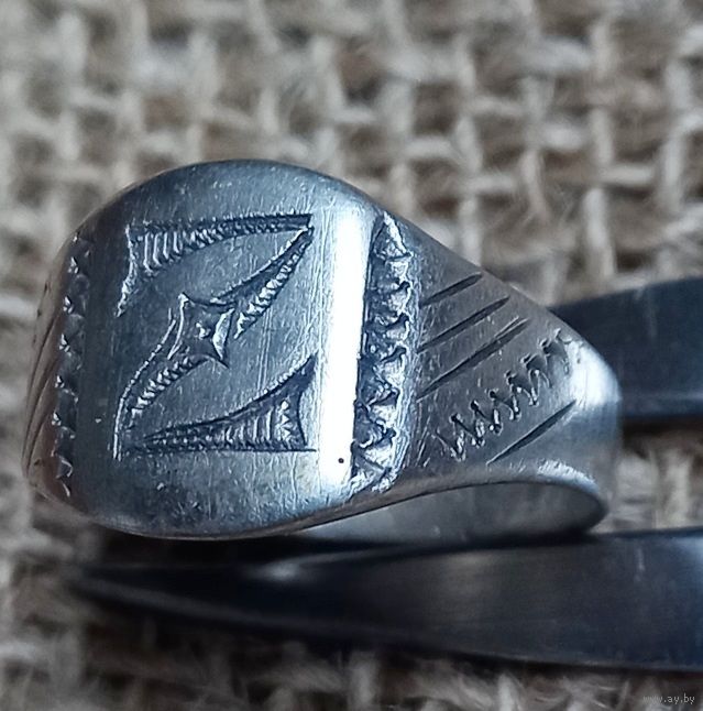 Кольцо,перстень,печатка утерянная интуристом в 1944 году, серебро, состояние на фото,клейм нет, внутренний диаметр 20 мм.