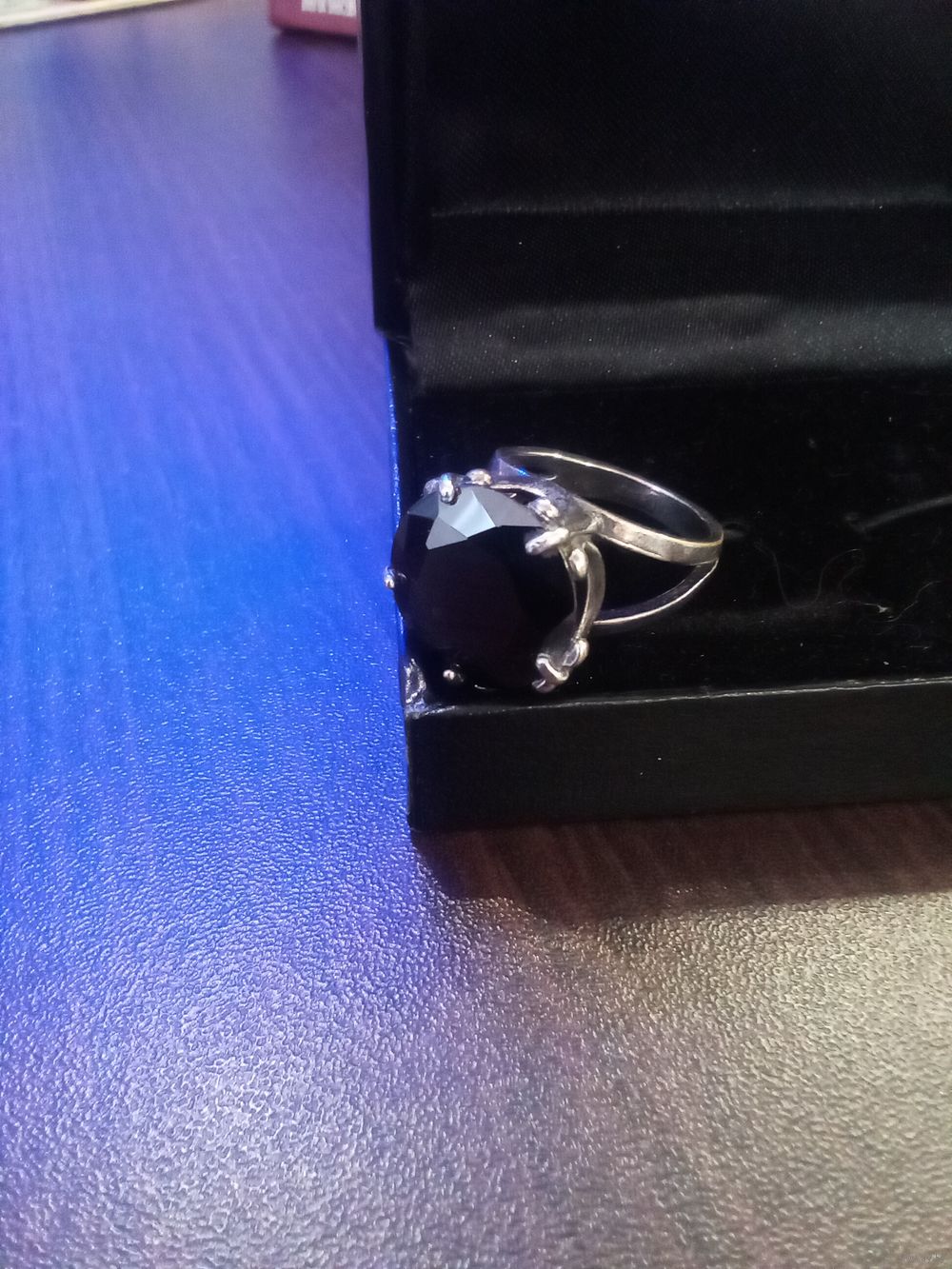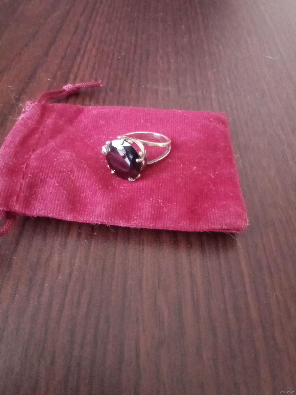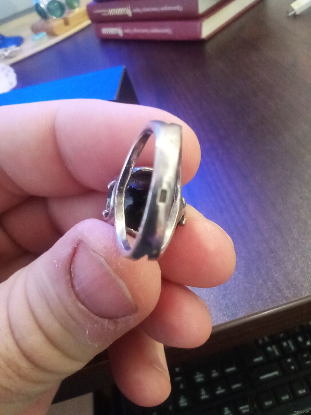 Перстень с большим гематитом, серебрение. Размер 18 или 18.5