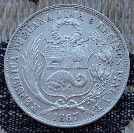 Перу 1 соль 1867 года. Серебро 900. Сторгуй за свою цену, предложи обмен! Y115-2