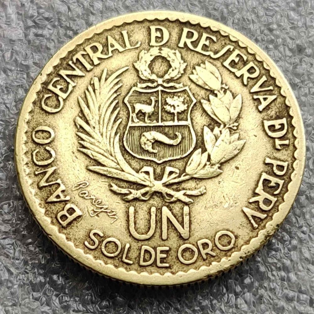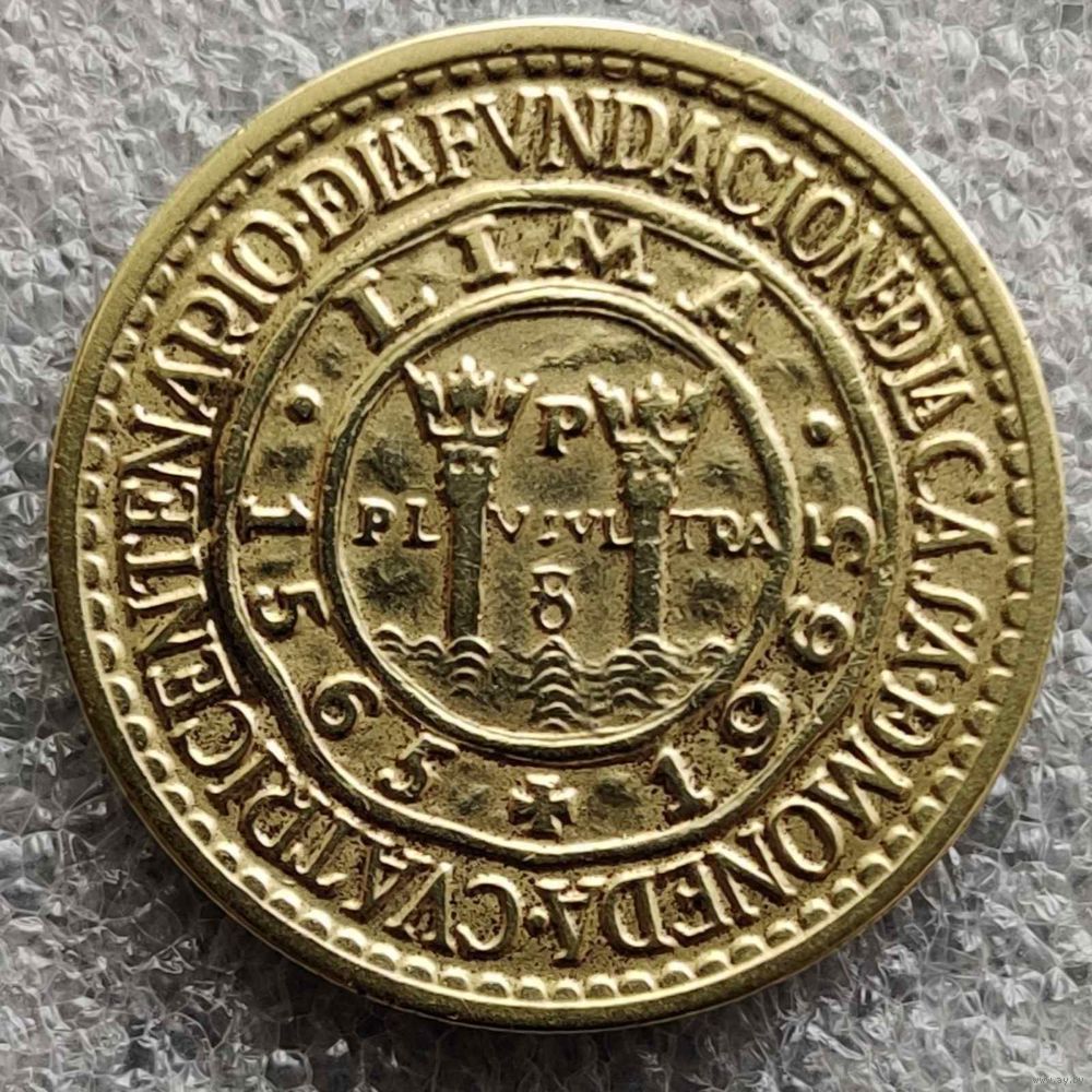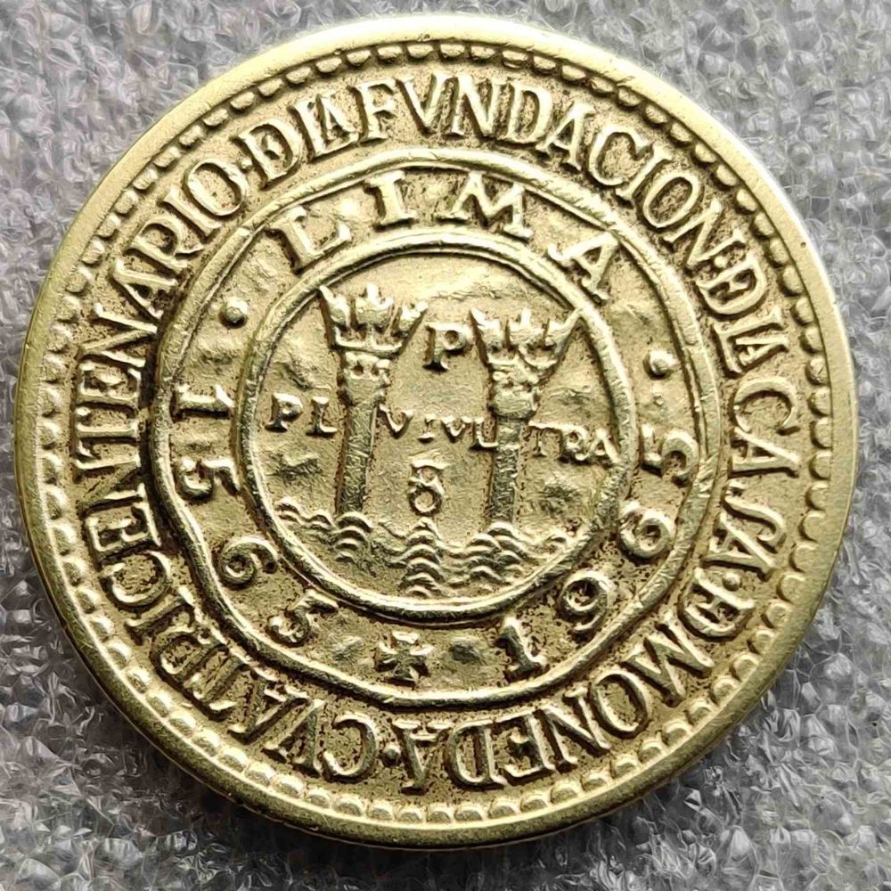Номер KM # 240 Страна Перу Период Республика Перу (1918 - 1985) Валюта Перуанский соль Вид чекана Юбилейные монеты Номинал 1 соль Год 1965 Наименование 400 лет открытию Монетного двора Лимы Гурт Рубчатый Форма Круг Отношение авс/рев Монетное (180°) Материал Латунь Вес (g) 9 Диаметр (mm) 28 Толщина (mm) 2,04