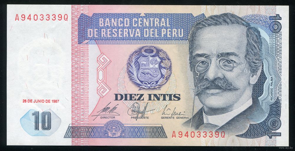 Перу 10 инти 1987 г. P129. Серия A. UNC
