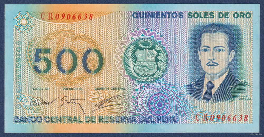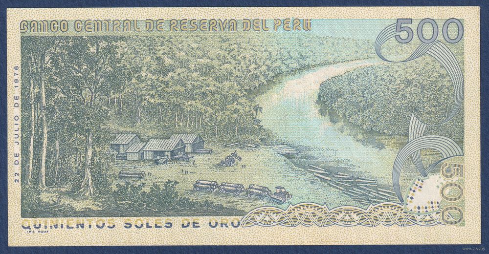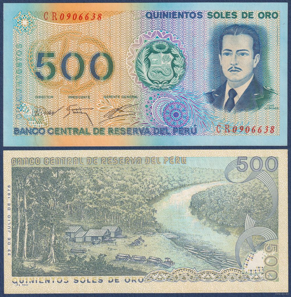 Перу, 500 солей 1976 г., P-115 (CR, военный лётчик Хосе Абелардо Киньонес Гонсалес, сплав леса), UNC-