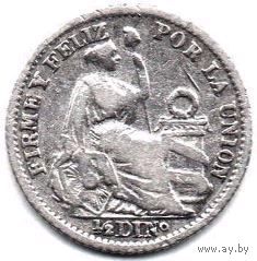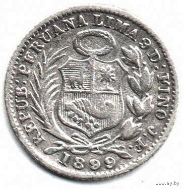 ПЕРУАНСКАЯ РЕСПУБЛИКА 1/2 ДИНЕРО 1899. СЕРЕБРО. НЕЧАСТАЯ
