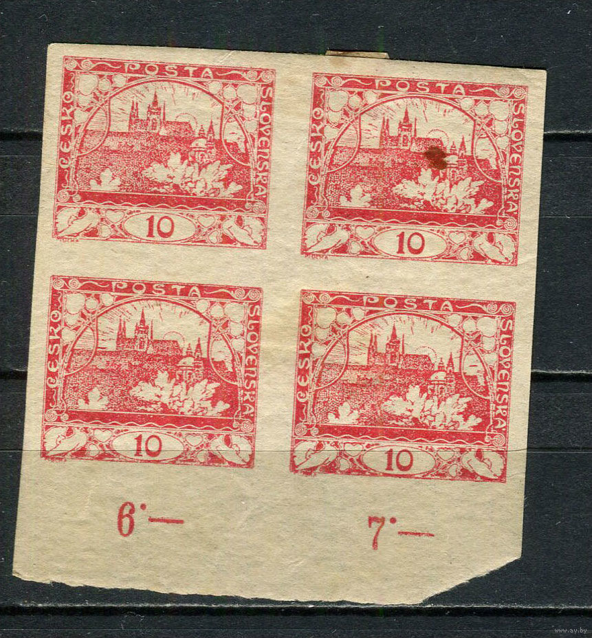 Первая Чехословацкая республика - 1918 - Пражский Град 10 H - (1 кварт) - [Mi.3] - 1 марка. MH. (Лот 32HU)-TG3P20