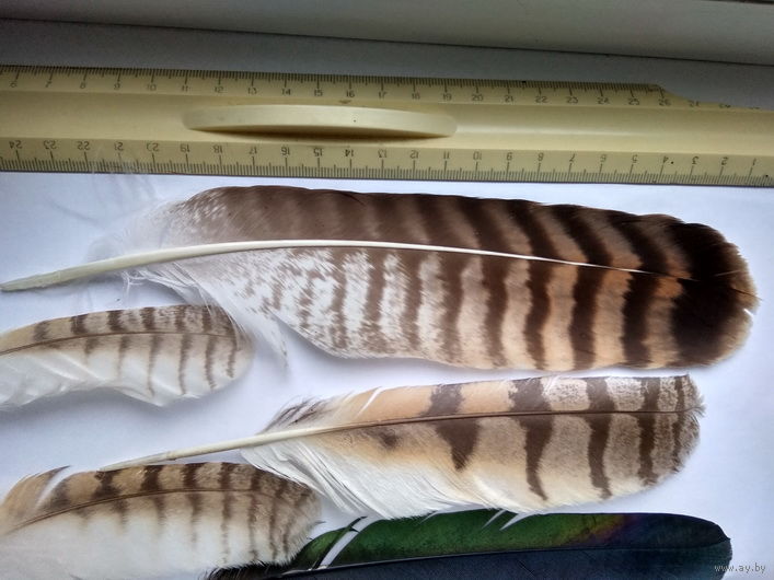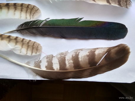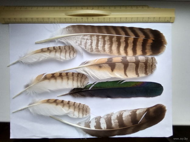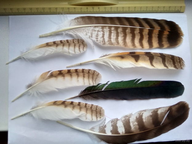 Перья - потеряшки в результате птичьих разборок за территорию. Перья каких птиц мне неизвестны ! Фото сделаны при дневном освещении и соответствуют действительности. Размеры смотреть на фото по приложенной линейке ( формат листа - А4 ) Минск район пл. Бангалор - универсам Рига .оперативный ответ в комментариях к лоту