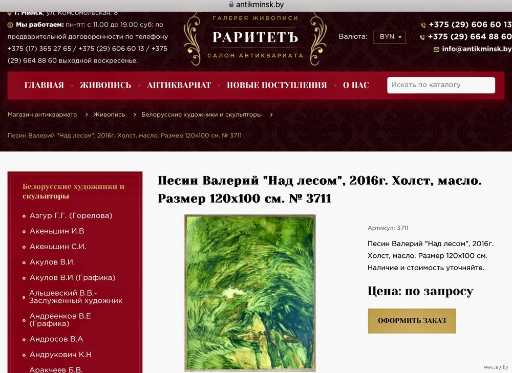 Картины находятся в собраниях Национального Художественного Музея в Минске и Национального центра современных искусств (Беларусь), в частных коллекциях, в том числе в коллекции Михаила Алшибая. — NATURO, ARTIS GALLERY, ЦСИ Винзавод Москва (2020); — H2O, ЦСИ Винзавод (2018); — Персональная выставка, СДМБанк, Москва (2018); — Персональная выставка, галерея «А3», Москва (2011); — Персональная выставка, галерея «АртЯр», Москва (2009); — Персональная выставка, музей города Лемборк, Польша (2011); — Персональная выставка, музей города Эйндховен, Нидерланды (1996); — Персональная выставка, галерея «Arte Directo», Гранада, Испания (1995); — Персональная выставка, галерея «Im Hof», Эссен, Германия (1994).