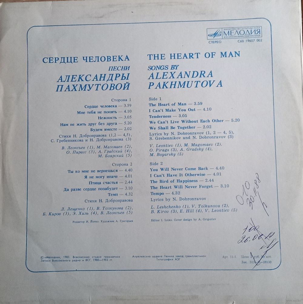 | Исполнитель | Песни Александры Пахмутовой/Сердце Человека |