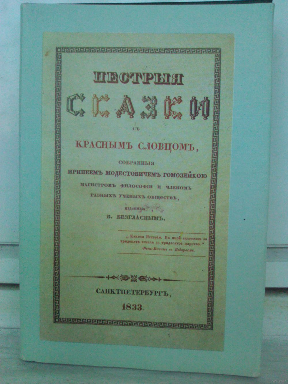 Факсимильное воспроизведение издания 1833 года. Пестрые сказки с красным словцом, собранные Иринеем Модестовичем Громозейко, магистром философии и членом различных учебных обществ, изданные В. Безгласным. Отдельной книгой представлены Примечания к факсимильной части.