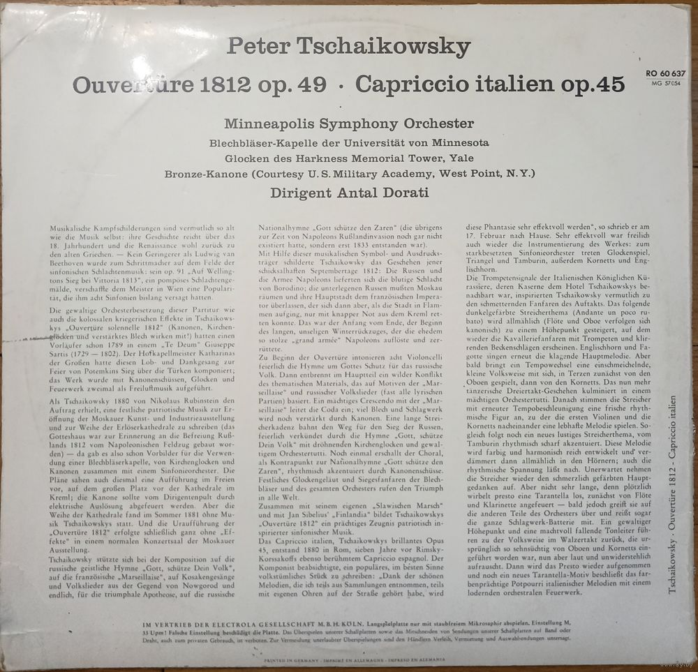 Peter Tschaikowsky - Minneapolis Symphony Orchestra, Antal Dorati – Ouverture 1812 / Capriccio Italien