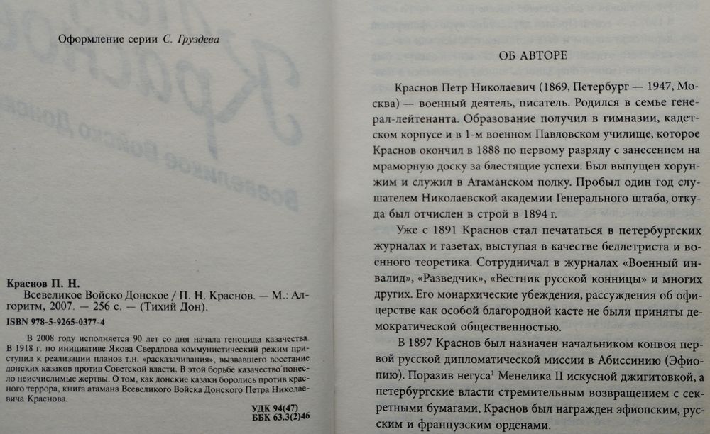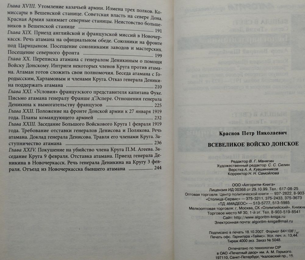 Тираж 4000 экз. 258 стр. Петр Николаевич Краснов (1869 - 1947) - Атаман Всевеликого войска Донского, лидер антибольшевистского сопротивления в годы Гражданской войны в России, настоящий патриот своей страны, произведения которого, помимо твердого и сурового воинского духа, неизменно пронизаны большой человеческой любовью к родной земле и болью за свою Родину, поруганную и растоптанную большевистскими варварами. Перед читателем предстанет именно та самая Россия, что безвозвратно нами потеряна, но чей образ мы еще в силах воскресить посредством живых строк, дошедших до нас из прошлых лет.