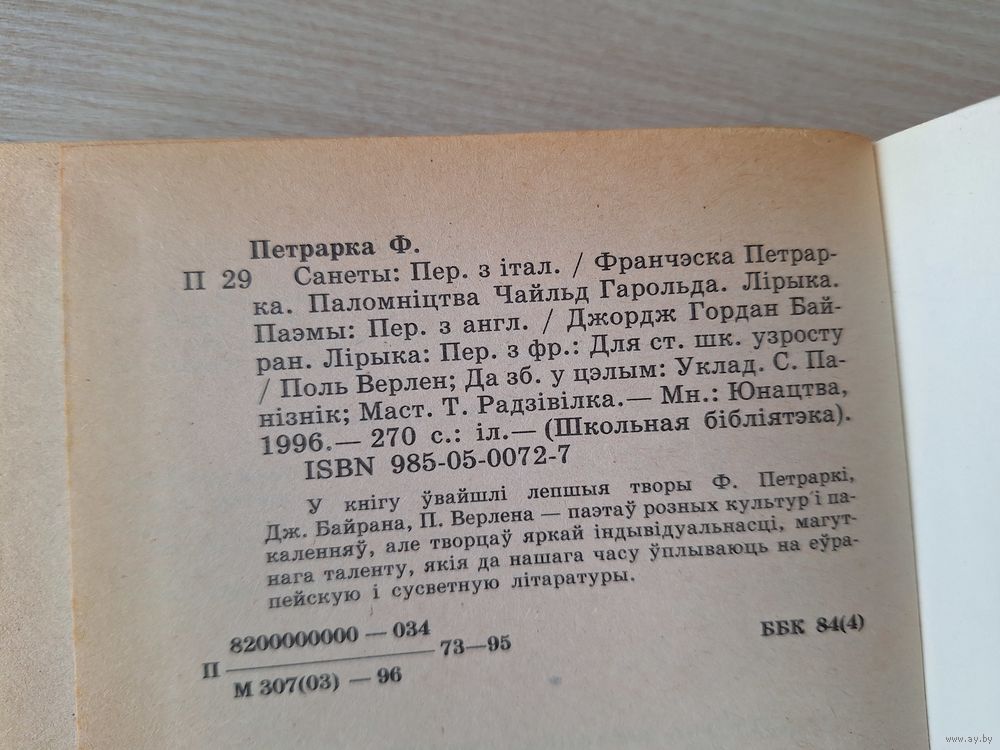 Автор | Франчэска Петрарка, Джордж Гордан Байран, Поль Верлен |