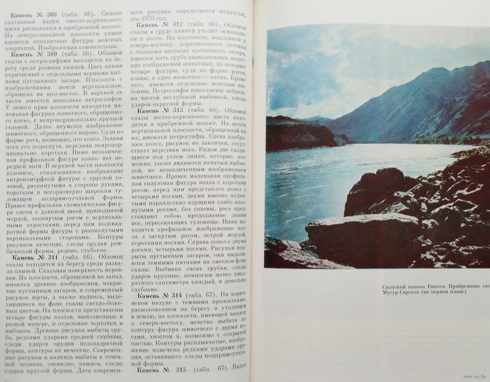 Большой энциклопедический формат. Мелованный альбом. Тираж 2300 экз. 292 стр. Эта книга посвящена петроглифам, выбитым и вырезанным на прибрежных скалах Верхнего Енисея вдоль древней тропы, известной в народе под названием «дороги Чингисхана». Наскальные изображения в Саянском каньоне Енисея — рисунки животных и загадочные знаки на утёсе около р. Биделик обнаружил более ста лет назад известный сибирский археолог А. В. Адрианов во время поездки на р. Чинге. Это было первое упоминание о петроглифах в районе, где ныне в широких масштабах производит исследования Саяно-Тувинская экспедиция Института археологии АН СССР под руководством С. Н. Астахова. Экспедиция была создана для спасения памятников древности, подлежащих затоплению в ходе строительства Саяно-Шушенской ГЭС. Отряд по изучению петроглифов Саяно-Тувинской экспедиции проводит интенсивные работы по фиксации наскальных рисунков, обнаруженных в этом районе. Рисунки на скалах вдоль «дороги Чингисхана» были открыты в 1976 г. московским художником В. К. Зенковым, принимавшим участие в работах Отряда по изучению петроглифов.