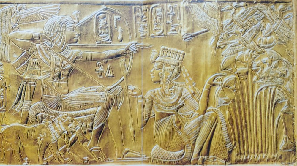 Отпечатано в Германии. Большой энциклопедический формат. Мелованный альбом по искусству Древнего Египта эпохи фараона Тутанхамона на нем. яз. 178 стр.