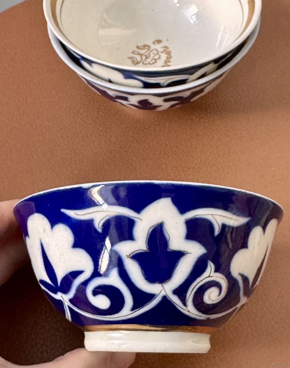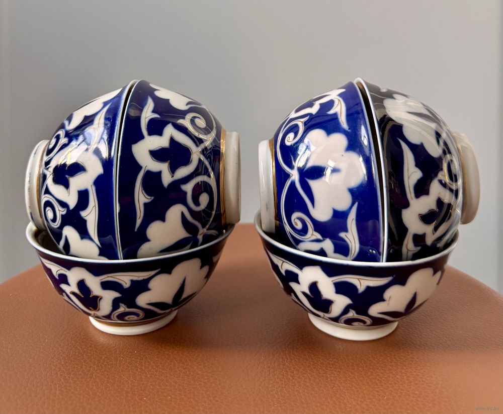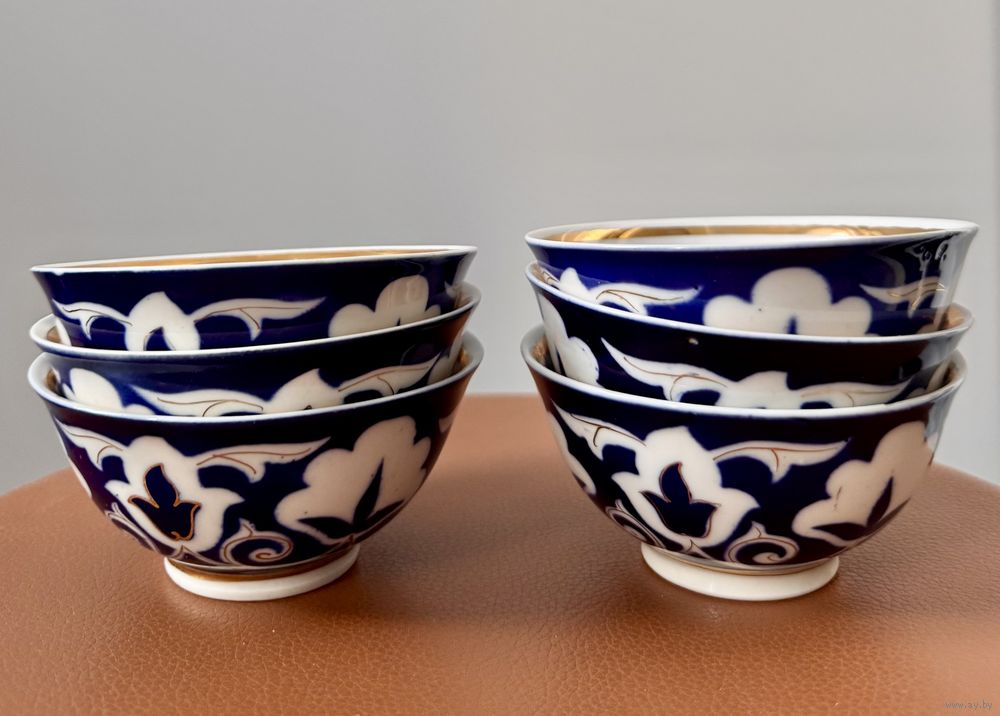 Набор из 6 пиал «Пахта» Ташкентского фарфорового завода (период СССР). Высота 5 см., диаметр 11 см. На одной есть незначительный скольчик. Цена указана за комплект.