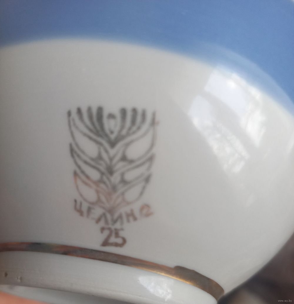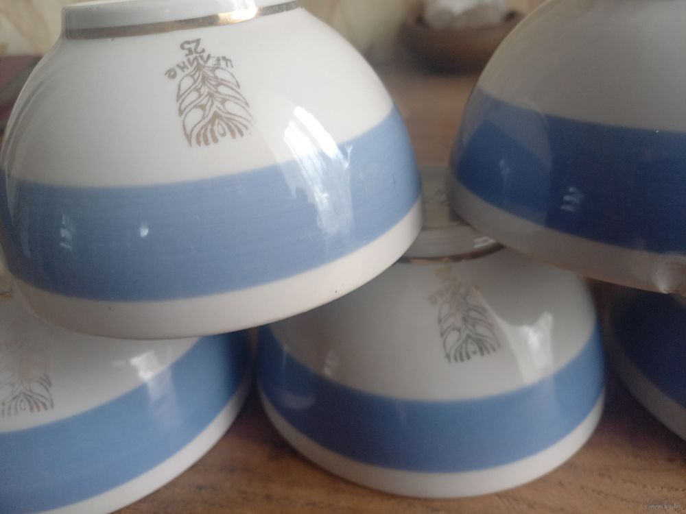Пиалы 25 лет Целине, Целиноградский Фарфоровый Завод, Казахской ССР (СССР). 1979 год, 5 штук, агитация.