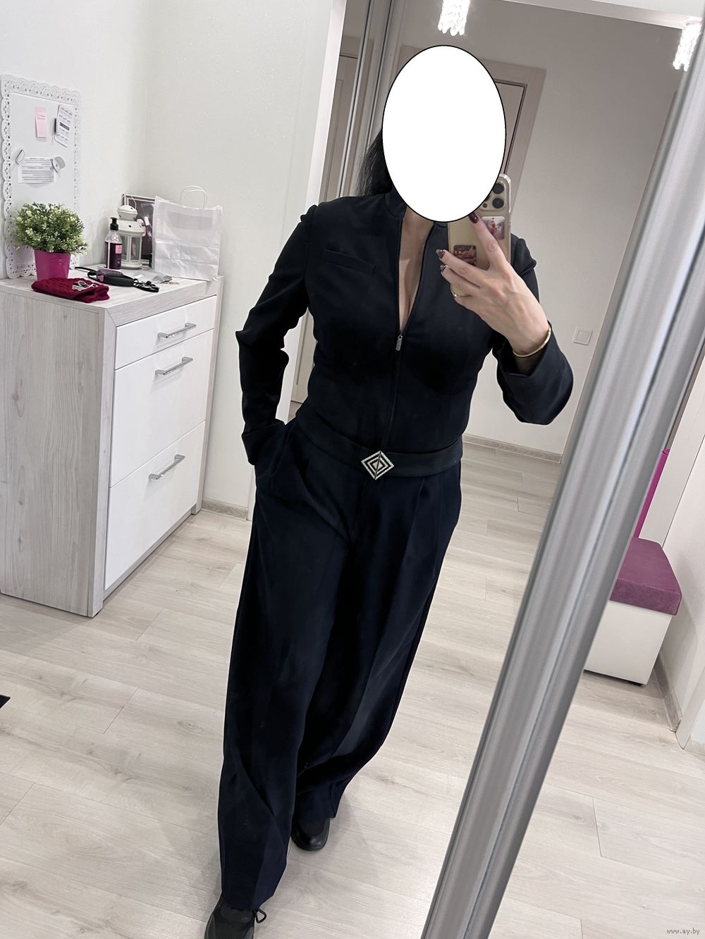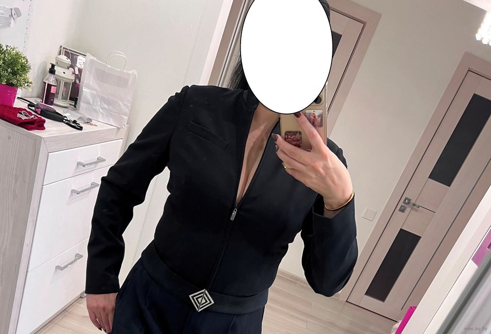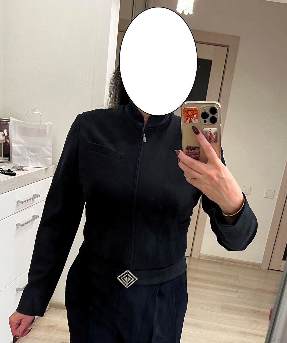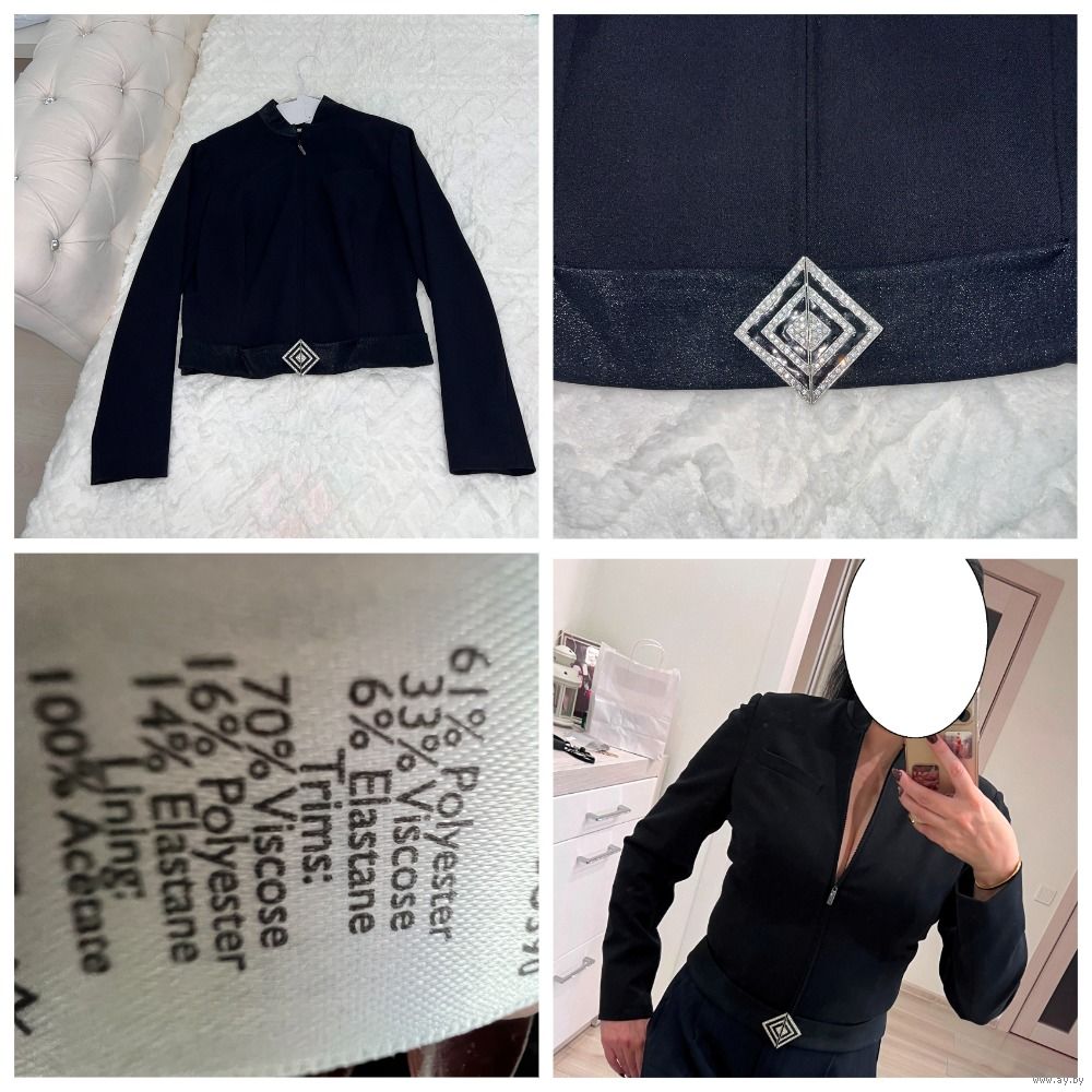 Оч красивый пиджак на молнии, дефектов нет, почти не носился, подкладка, пряжка с камнями, состав на фото. Р-р 44-46, одет на 46.