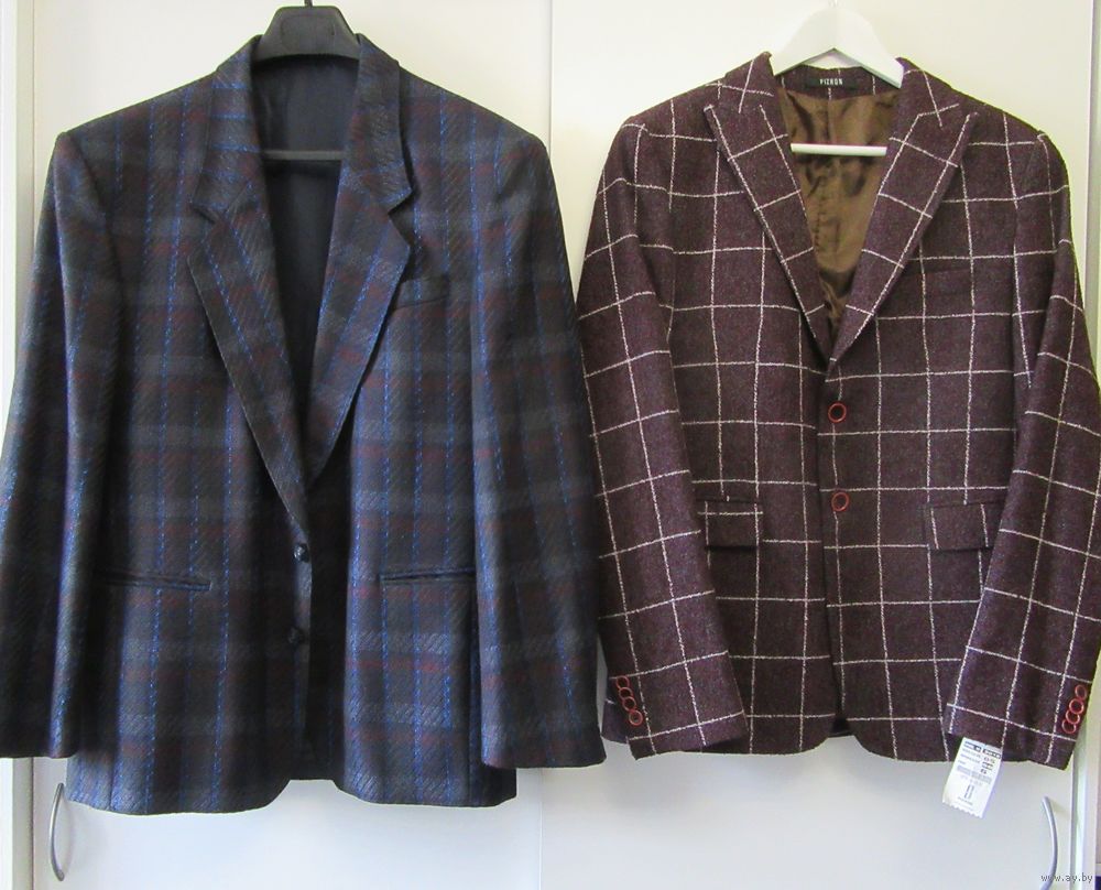 1) Новый бордовый пиджак в клетку PIZHON приталенный, сзади две шлицы, застежка пуговицы, внешние и внутренние карманы, подкладка, полушерсть, мягкий, тонкий и легкий. Размер 50, М - L, цена 125 руб.