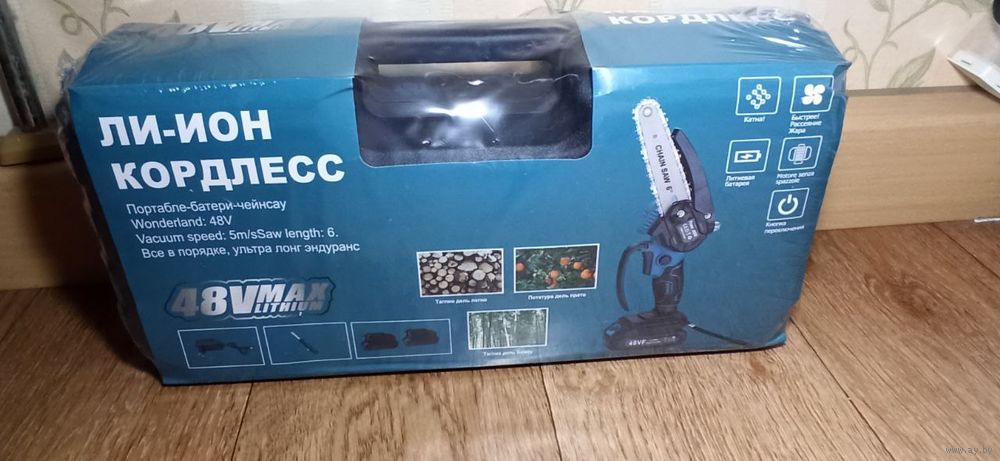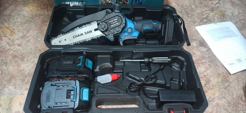 Пила аккумуляторная цепная 6 дюймов /Сучкорез/Минипила/48V/Подача масла. с двумя АКБ в кейсе