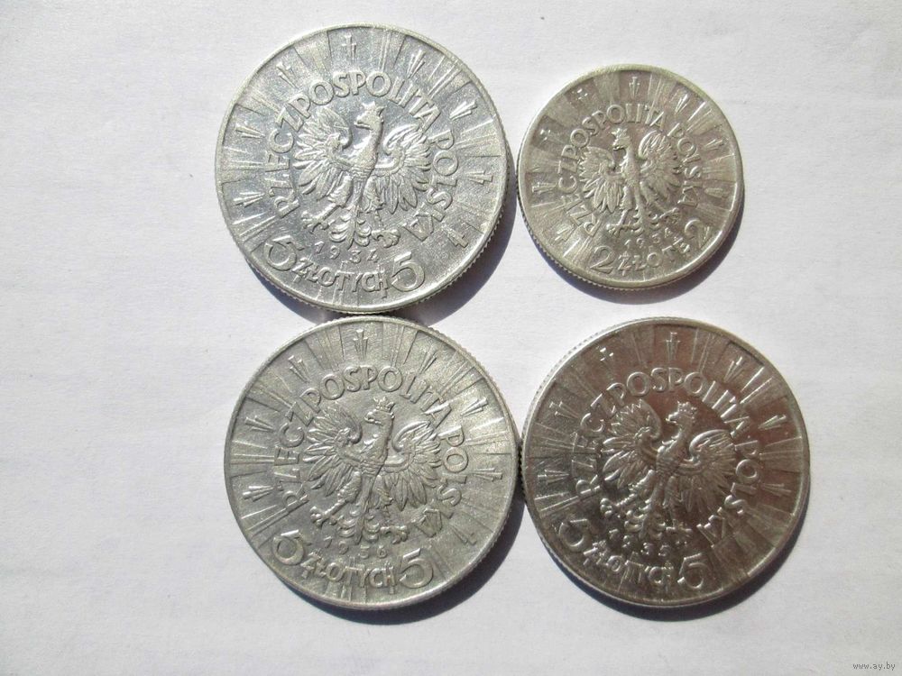 | 5 злотых 1934, 35, 36 лет и 2 злотых одним лотом | |