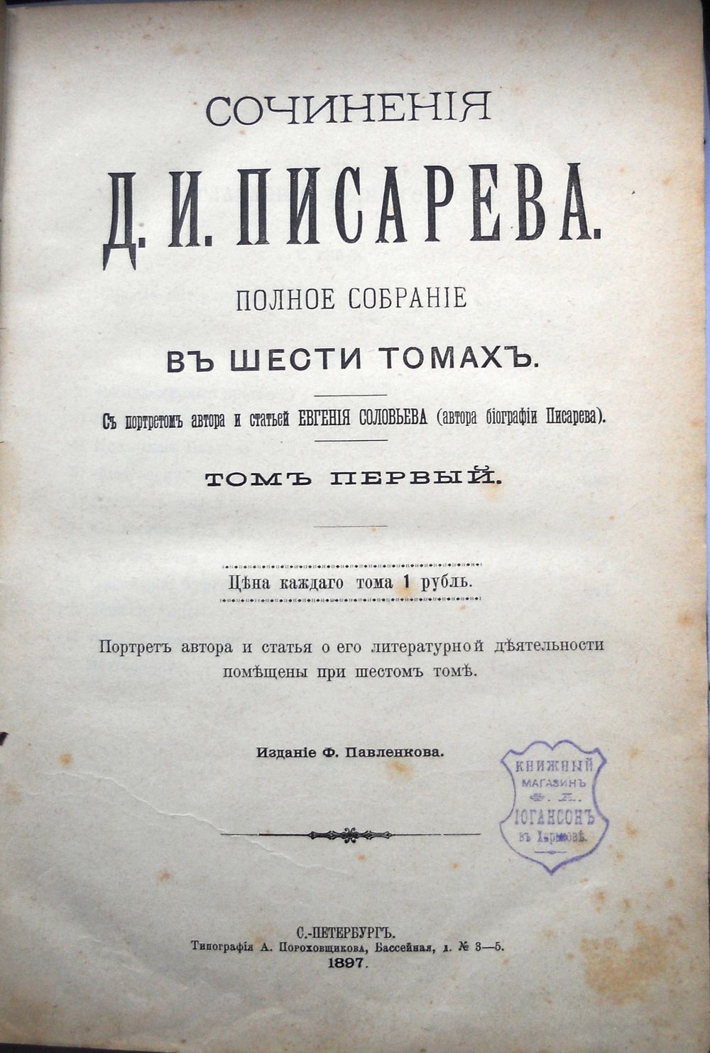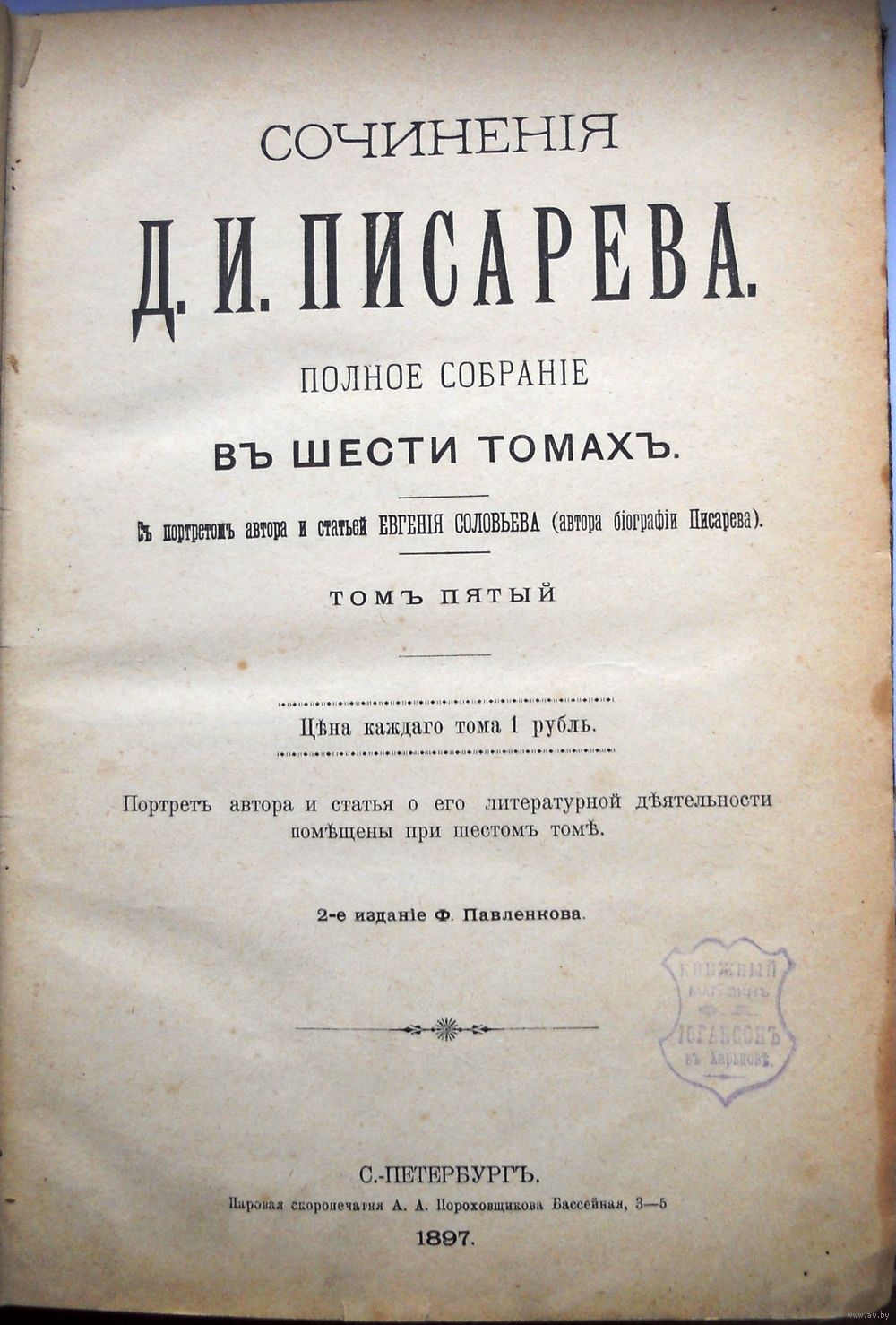 Т. 6. 1905. 547 стб. 27 Х 19 см. В добротном полукожаном издательском переплете с тиснением по корешку фамилии автора, названия. На корешке и обложки потертости. На титульном листе дореволюционная печать книжного магазина .
