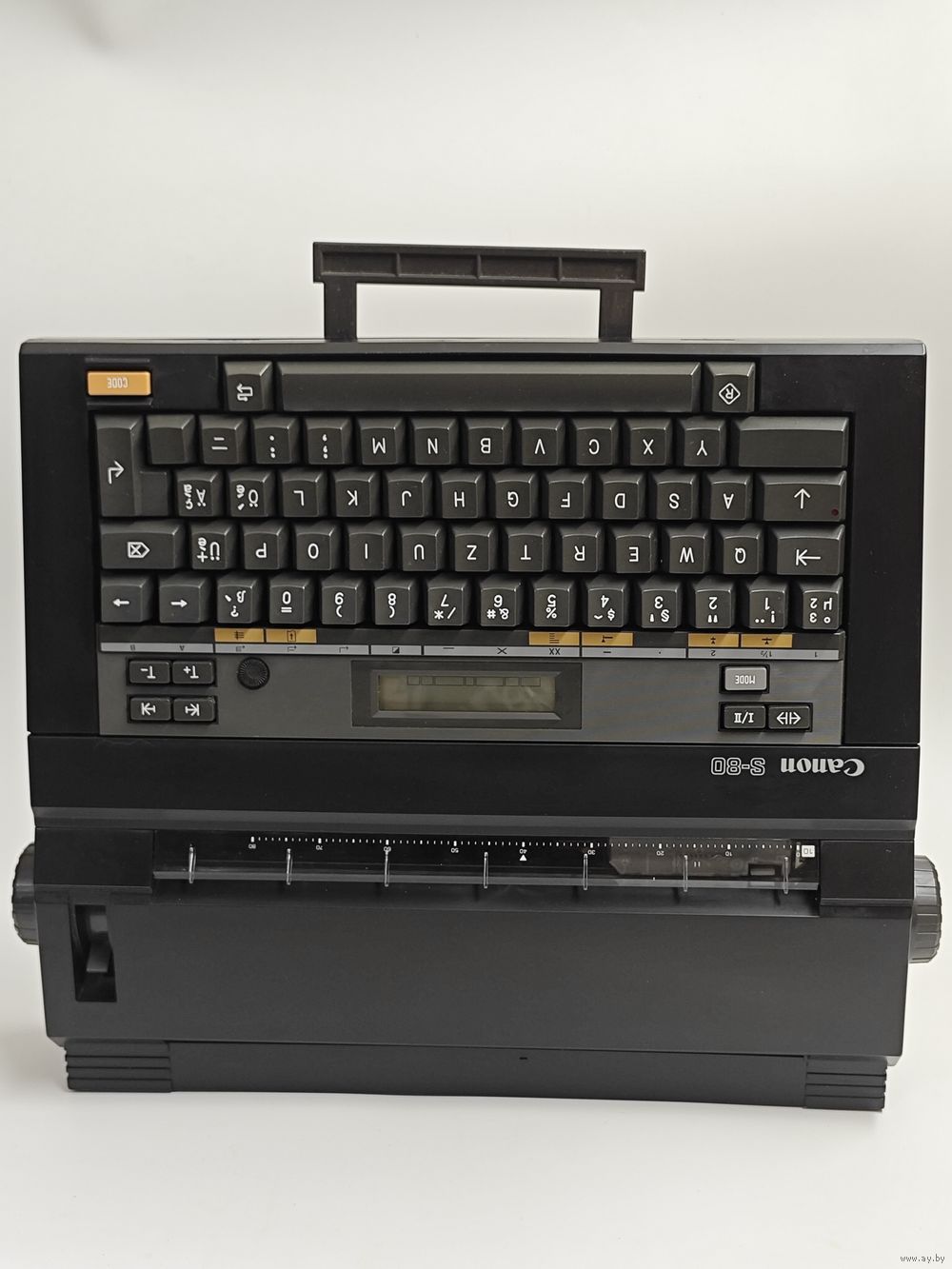 Портативная электронная пишущая машинка Canon S-80. Состояние на фото, отсутствует блок питания,есть батарейный отсек. Работоспособность не проверялась. Перед тем как сделать ставку изучите фото.