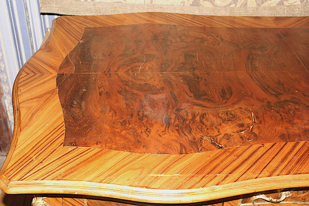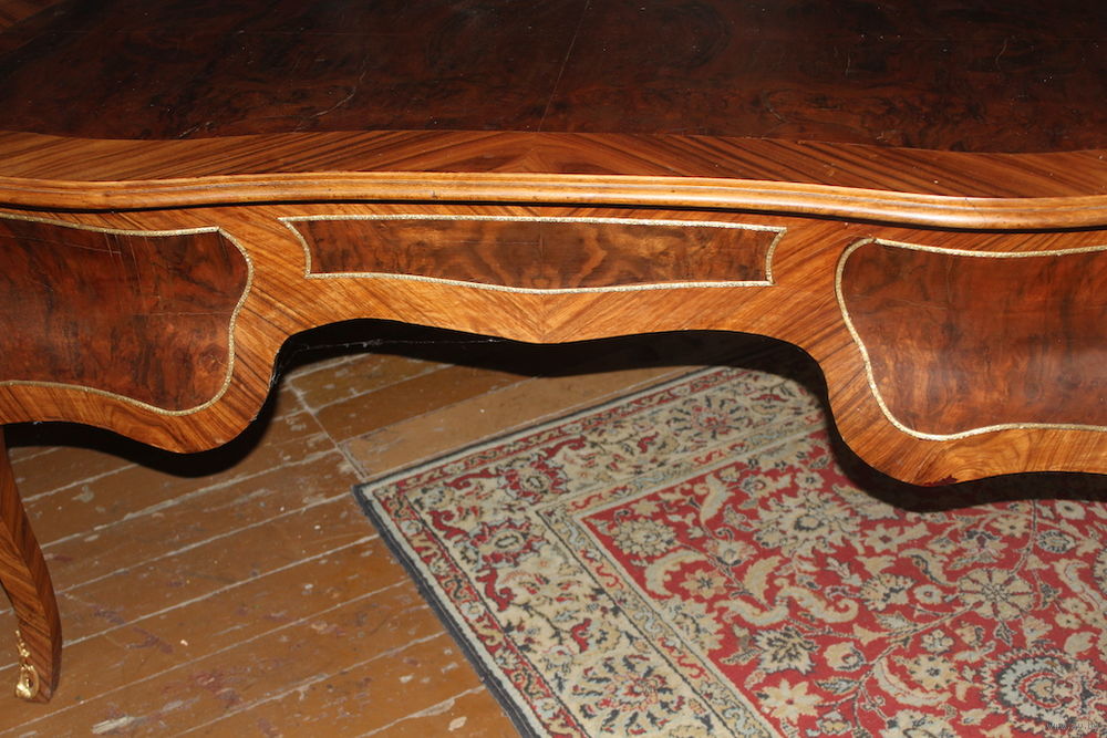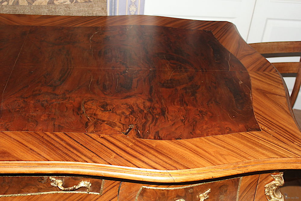 | Бронза, золочение,маркетри,корневая часть ореха.Выс 83,шир 1,75,глуб 95 | |