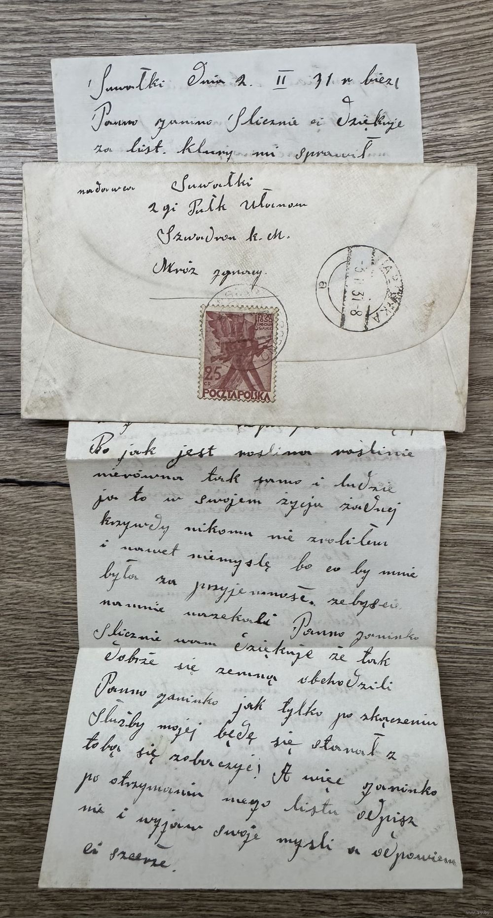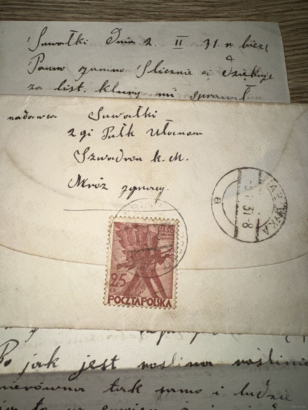 Письмо 2 Pulk Ulanow. Suwalki 1931г.