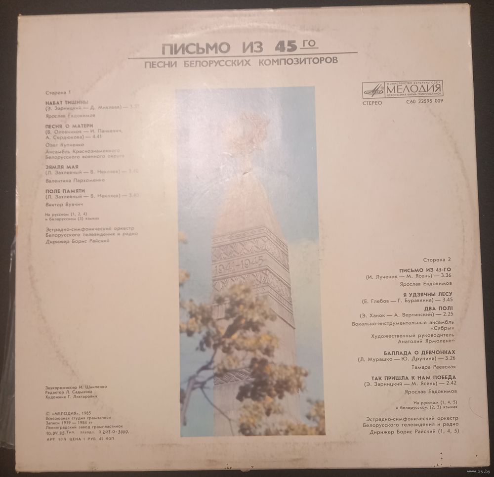 Исполнитель Письмо Из 45-го. Песни Белорусских Композиторов