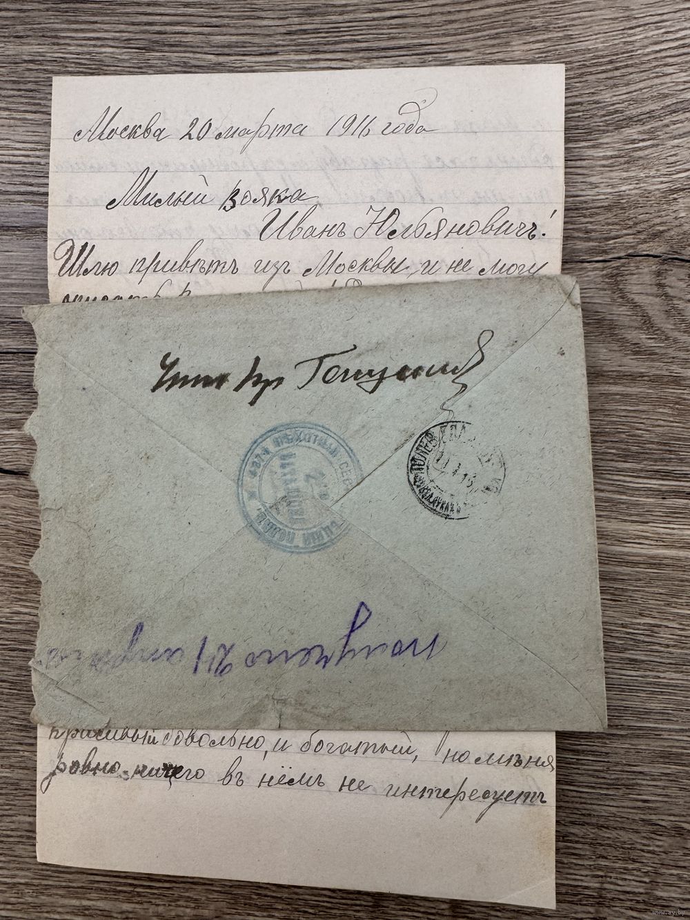 Письмо на фронт 1916г.пмв.