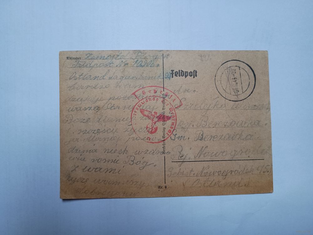 Состояние как на фото , письмо 1943 г. из сталага, лагерь военнопленных, адресат проживал в Новогрудке , 100% оригинал.