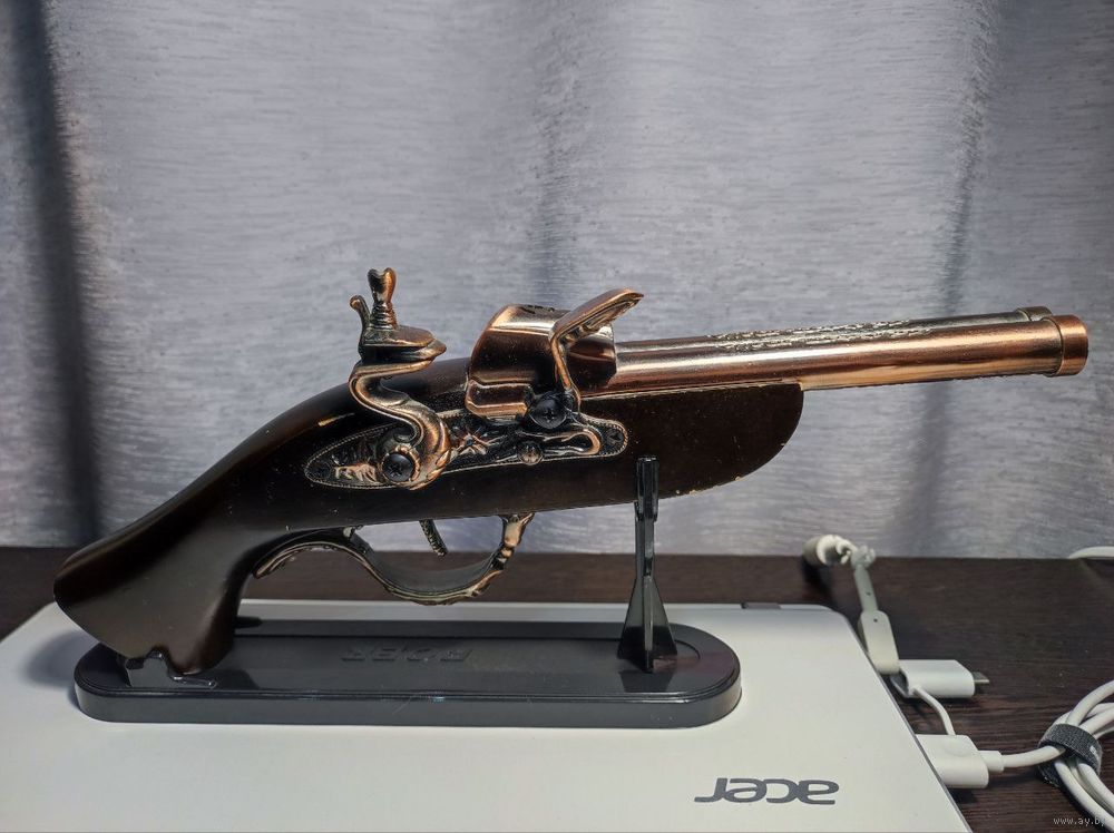 Пистолет старинный двуствольный зажигалка дерево муляж макет сувенирный винтаж ретро интерьер