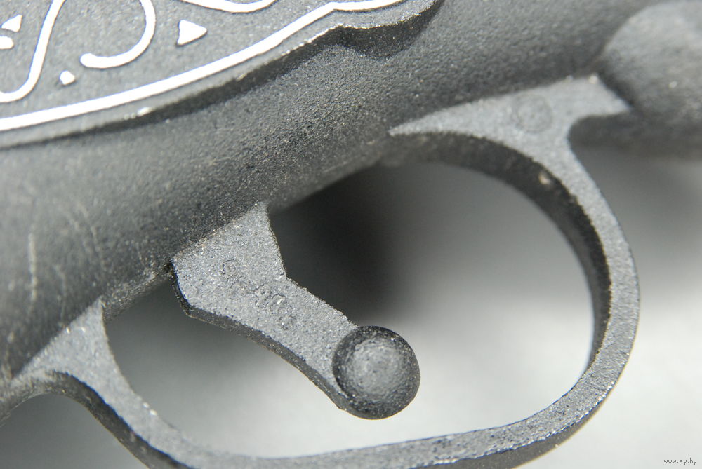 Длина около 35 см. Тяжёлый. Из какого-то белого металла, не магнитится.