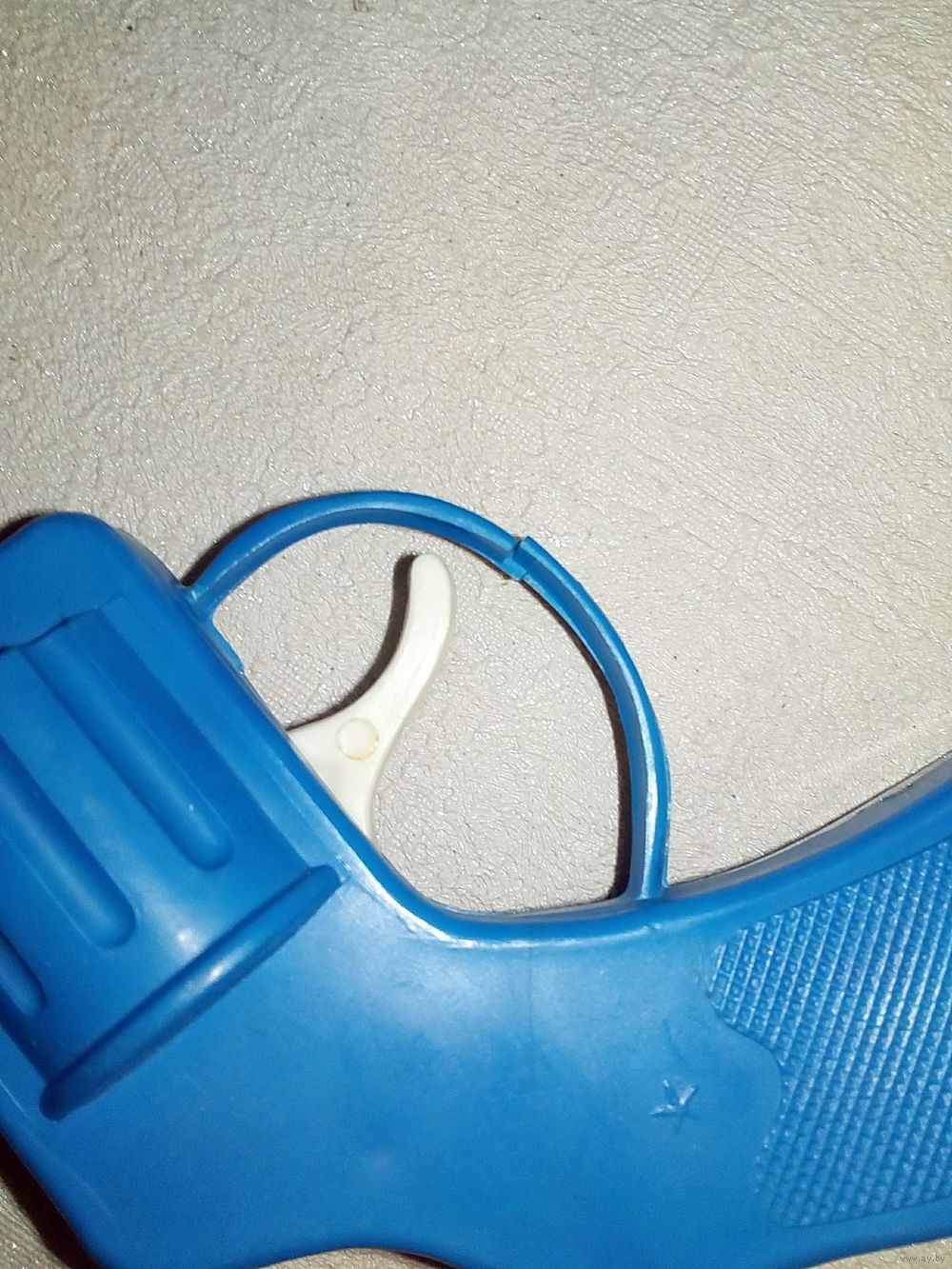 | На фото, пластик, без клейм, серебристые достаточно хлипкие. По отдельности - 3 руб за один. | |