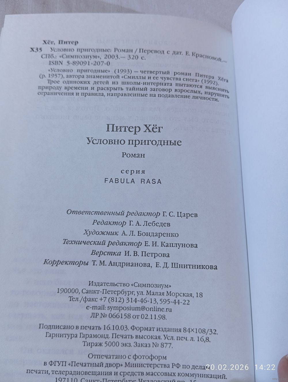 Питер Хег. Условно пригодные. Роман. СПб Симпозиум 2003. 1е изд. В прекрасном состоянии, тв переплет, суперобложка. 320 с. Тираж 5000. Возможность отправки Белпочтой, полная предоплата на карту Беларусбанк