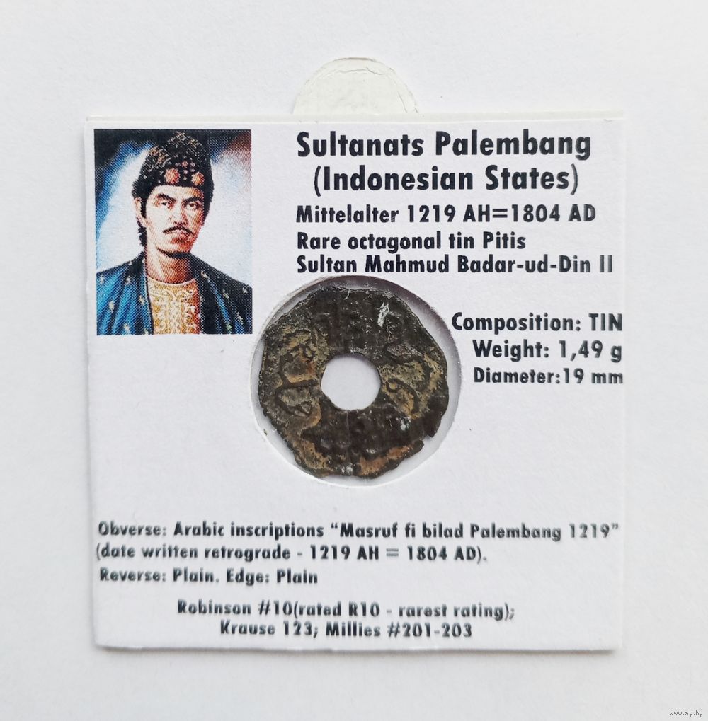 Питис султана Махмуда Бадар-уд-Дин II. Султанат Палембанг. Олово.