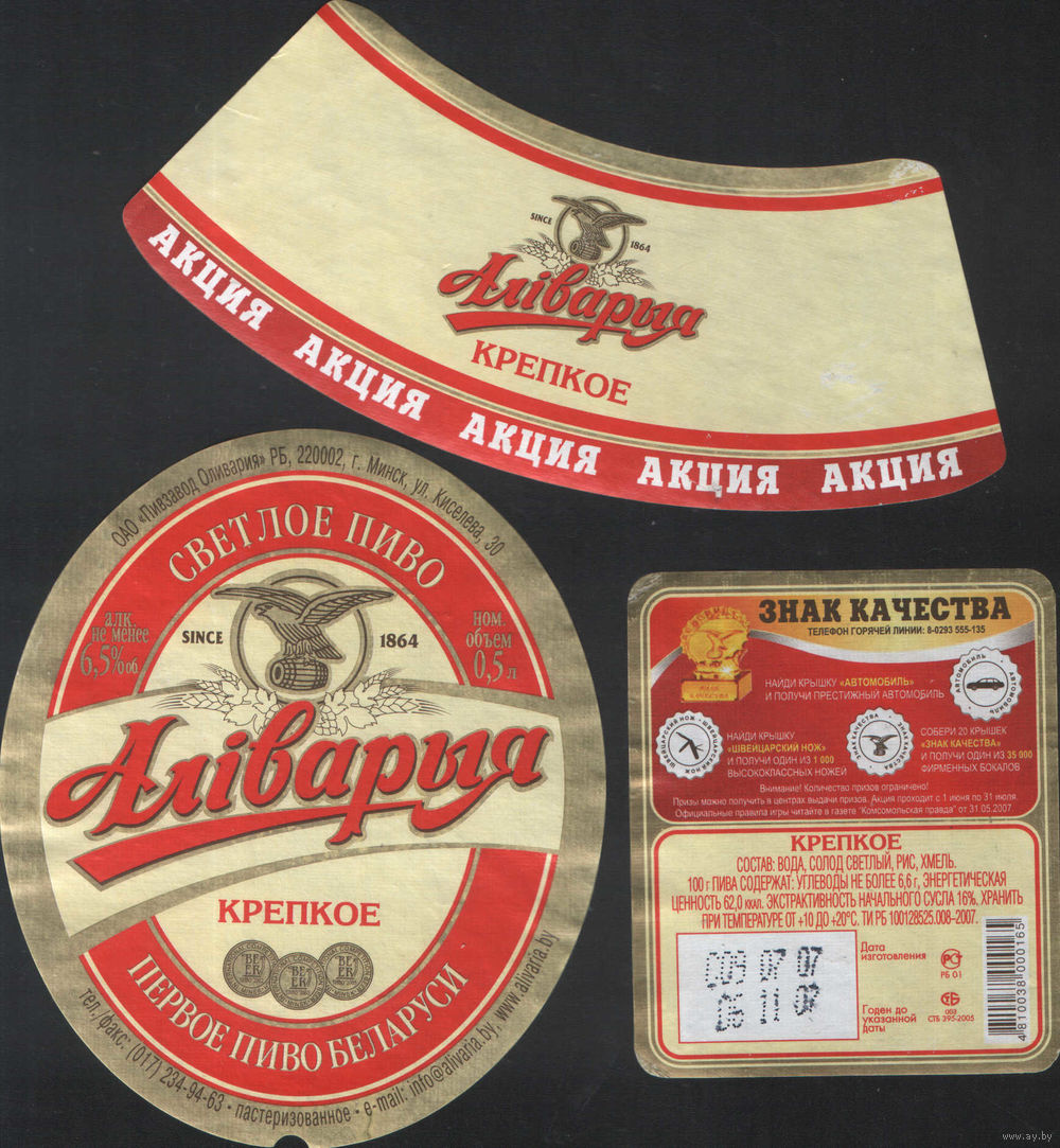 Пивная этикетка - Алiварыя Крепкое - Акция Знак качества