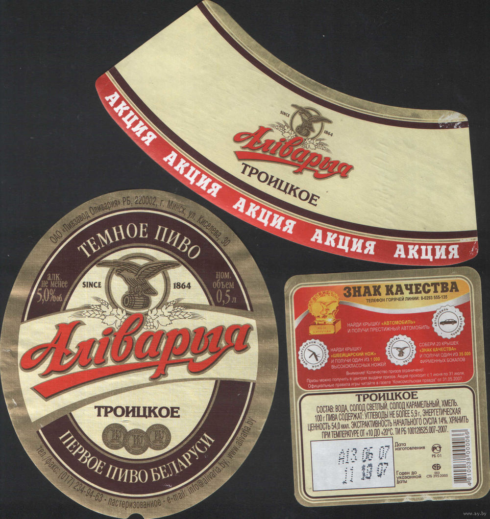 Пивная этикетка - Алiварыя Троицкое - Акция Знак качества