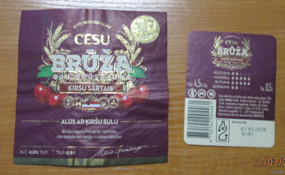 Пивная этикетка Латвия (отмокашка)