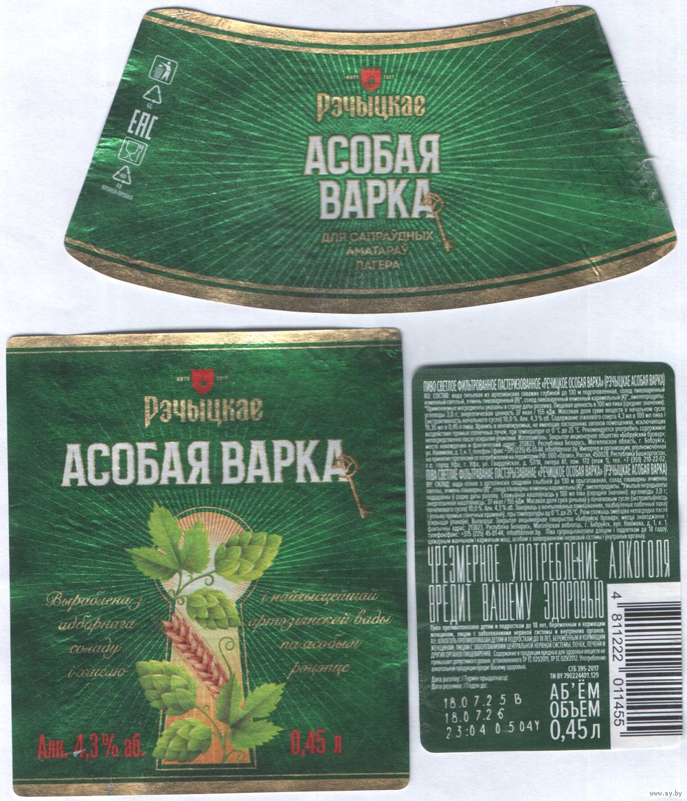 Пивная этикетка - Рэчыцкае Асобая Варка