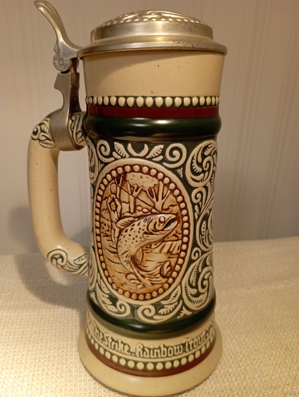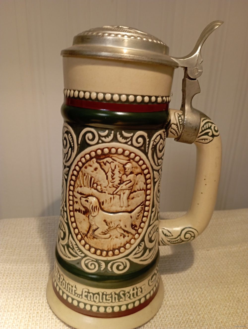 Винтаж Пивная кружка AVON 1978 .Охота Рыбалка Радужная Форель Английский Сеттер .Керамика. Крышка Олово Пиво 0,5 л .Бразилия