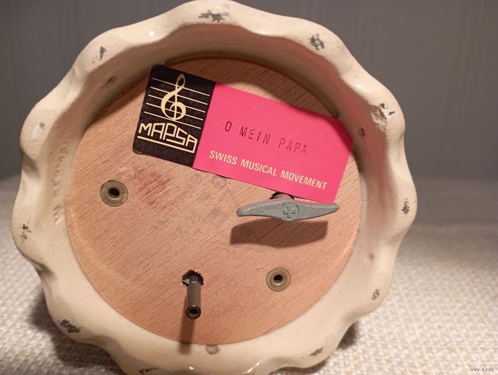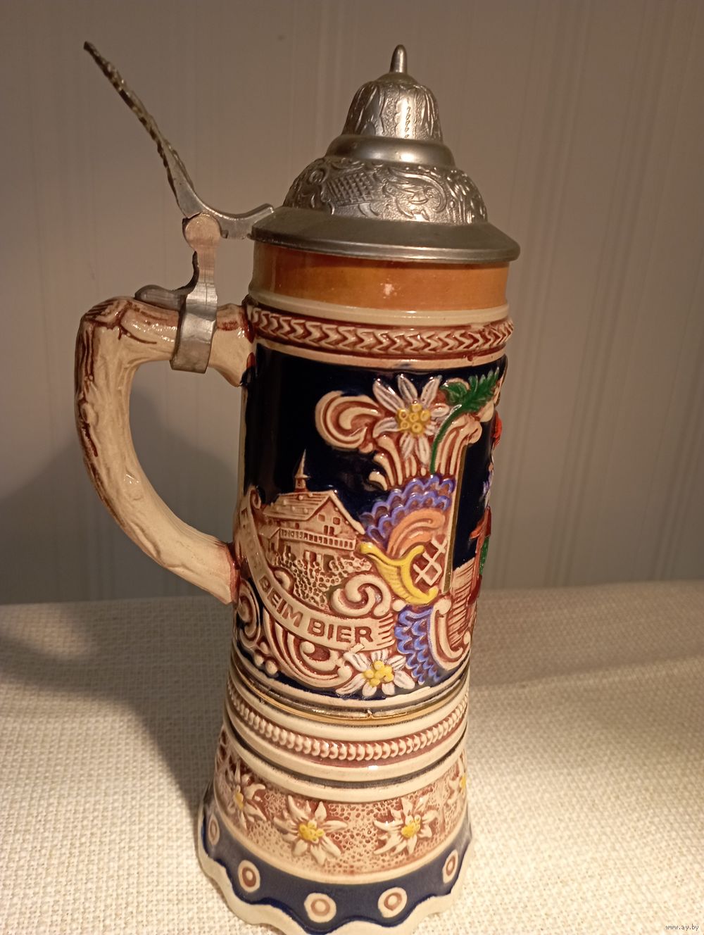 Это коллекционный предмет, часто ассоциируется с пивным бокалом из Западной Германии.Крышка из олова,зубчатое дно.Винтажный музыкальный механизм Mapsa Swiss Musical Movement расположен в основании пивного бокала(штайна). Механизм играет мелодию "O Mein Papa".Они считаются уникальными предметами коллекционирования и могут представлять интерес для любителей винтажного декора и пивной атрибутики.Обьем - 250 мл.