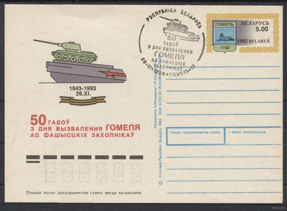 ПК с ОМ. 50 лет освобождения Гомеля. ВОВ. Спецгашение. Беларусь 1993 год.