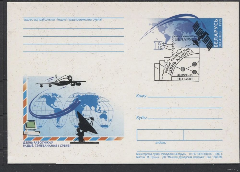 ПК с ОМ. День работников радио, телевидения. Спецгашение Витебск. День клиента. Беларусь 2001 год