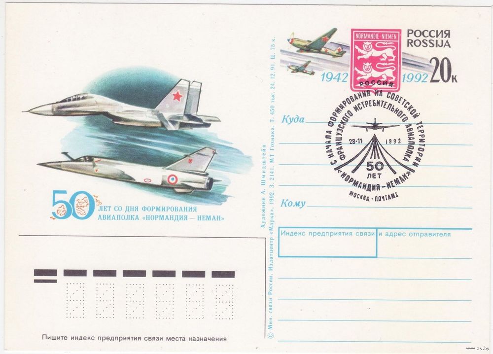 ПК с ОМ Россия 1992. 50 лет формирования полка Нормандия-Неман. (СГ- Москва 1992)